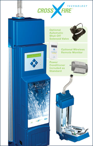 UV Pure Technologies’ Upstream® systems, with patented Crossfire Technology® are engineered to meet the same standards as NSF/ANSI 55 Class A systems, but are priced competitively with ordinary UV systems. Six models, for flow rates of 10, 15 and 30 GPM can treat water with UVT as low as 50%.